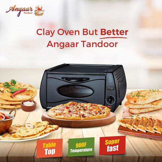 The Angaar Mini Tandoor Oven uses advanced design and technology to cook food faster than conventional methods. The oven's heating element is specifically designed to quickly reach and maintain high temperatures, which allows it to cook tandoori roti, chapati, naan, and even pizza in a fraction of the time it would take using traditional cooking methods.